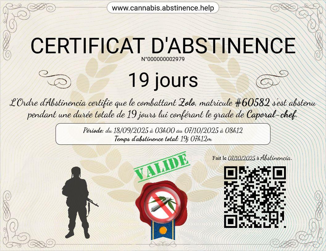 A atteint son objectif de 21 jours38 jours d'abstinence cumulés -